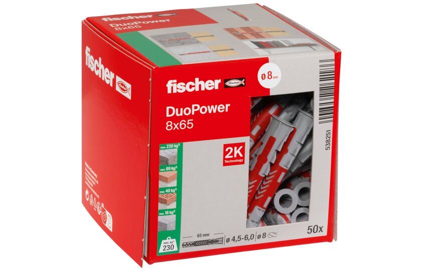 Met de fischer DuoPower 8x65 wordt betrouwbaar bevestigen eenvoudiger dan ooit, ongeacht de ondergrond.