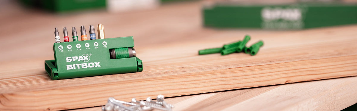 De SPAX BITbox is een praktische en compacte oplossing voor het overzichtelijk opbergen en snel wisselen van schroefbits. Deze set bevat de maten T10, T15, T20, T25, T30 en T40 – een complete selectie voor uiteenlopende toepassingen. Dankzij de gepatenteerde SPAX T-STAR plus opname sluit de bit perfect aan in de schroefkop, wat zorgt voor optimale krachtoverdracht en minimale slijtage.
