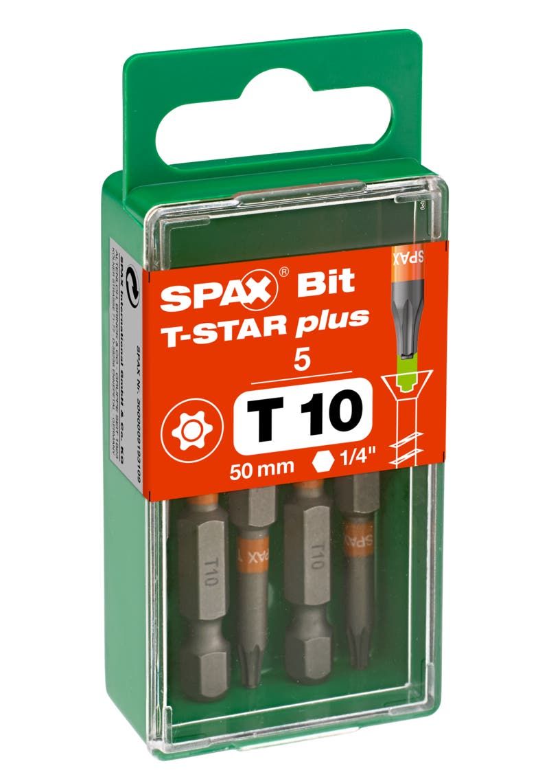 De SPAX bits T-STAR plus zijn speciaal ontworpen voor een perfecte aansluiting op het SPAX schroevenassortiment met T-STAR plus krachtaangrijping. Dankzij de nauwkeurige maatvoering en het doordachte ontwerp garanderen deze bits een efficiënte en betrouwbare schroefverbinding, zelfs onder veeleisende omstandigheden.