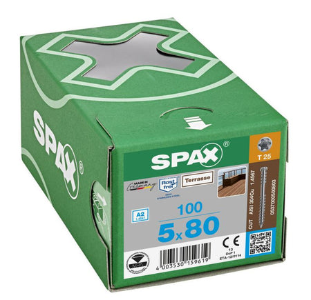 SPAX vlonderschroeven - T25 Cilinderkop - 5 x 80 mm - RVS deeldraad (100 Stuks)